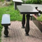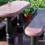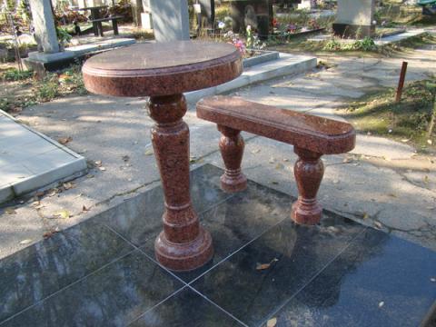 Наша компания предлагает клиенту множество вариаций гранитных столов и лавочки. Они отличаются, в первую очередь, по технологиям изготовления. Самые простые - это обычные прямоугольные столики и скамьи из гранита с технической фаской по кругу. Есть еще варианты с закругленными углами на крышке стола и лавки. Также в продаже имеются круглые крышки с профильной фаской и точеными ножками. «КиевГранит» предлагает своим покупателям исключительно качественные изделия из натурального камня – гранита. Гранит не только предает красивый внешний вид, но и по прочности этот вариант довольно удачный и практичный. Покупая столы и лавочки для установки возле могилы, клиент должен помнить, что это те элементы, которые постоянно находятся под открытым небом и влиянием различных погодных условий. Гранитные столы и лавочки выдерживают любые влияния и долгие годы сохраняют первозданный внешний вид, блеск и свойства. Мы готовы исполнить любой индивидуальный проект на изготовления гранитного стола и лавочки, а также помочь клиенту создать уникальный эскиз, по которому мы изготовим гранитные изделия.