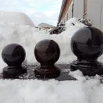 Шарики из гранита могут использоваться при установке на кубик. гранитного цоколя или ограждения. Чаще всего заказывают шары диаметром 10, 12,15 см. есть различные окрасы.